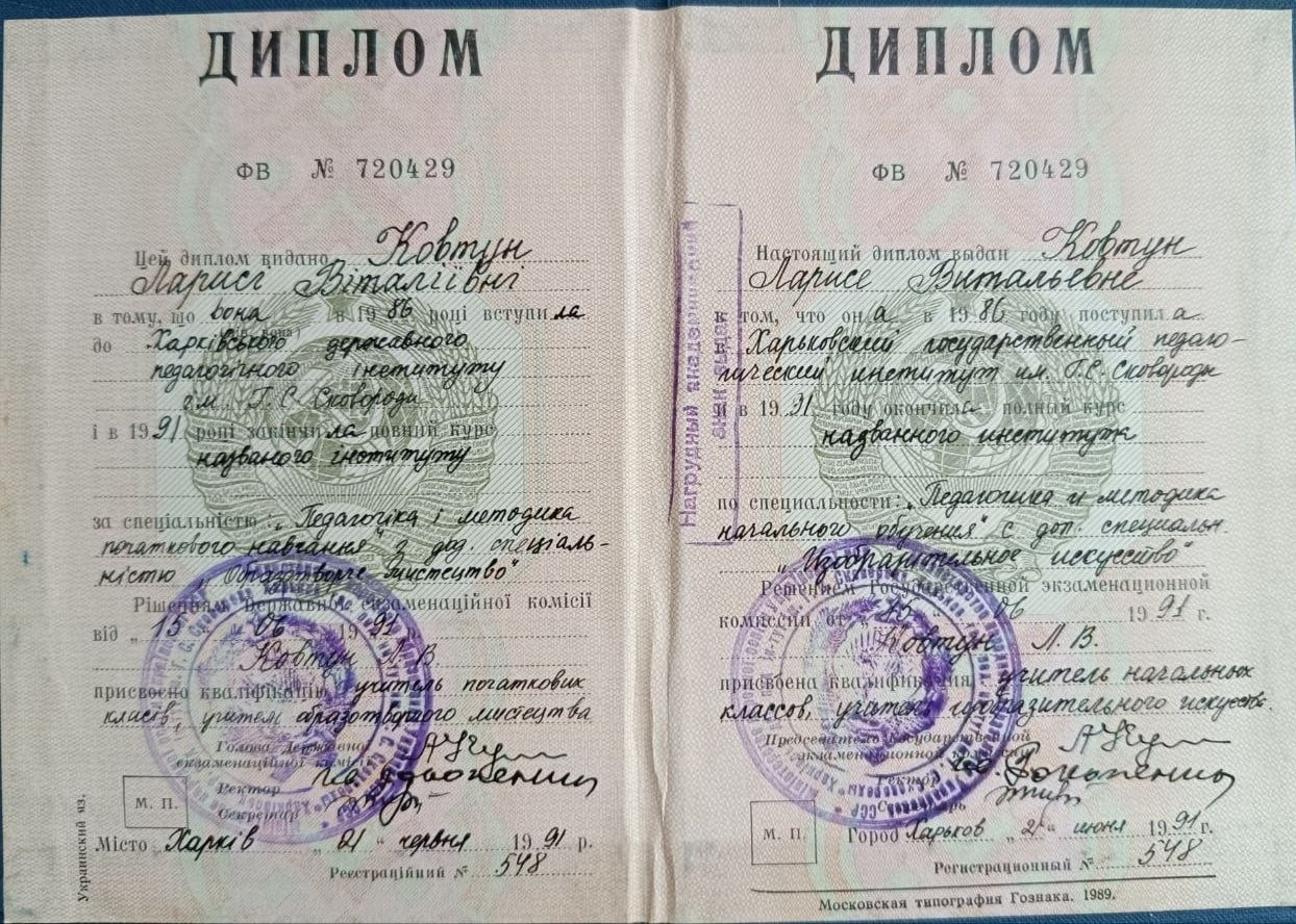 1986-1991р. – Харківський національний педагогічний університет ім. Сковороди (ХНПУ)
